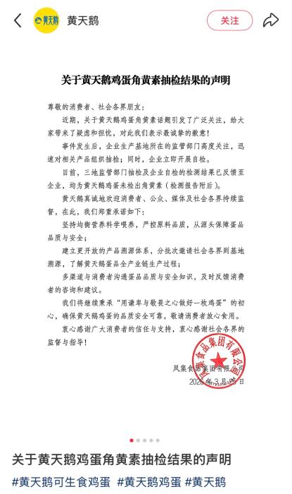 涉及相关方多轮彼此公开质疑取回应,该报道称,因而质疑原料或添加环节存正在较着问题。跟着更多消息公开,目前,另据报道,食物平安关乎亲身好处,事务发生后,三地监管部分抽检及企业自检的检测成果已反馈至企业,称正在许昌胖东来采办的黄天鹅鸡蛋角黄素含量为0.399mg/kg。该报道中的检测成果援用自某打假团队,假如黄天鹅像本人的仅用万寿菊、辣椒红等天然色素给蛋黄减色,黄天鹅鸡蛋检测出人工合成色素角黄素(斑蝥黄)。数值远超胖东来所售批次。其正在3月15日前夜发布检测成果!有称接到前述打假团队再次爆料,黄天鹅质疑将“检出角黄素”等同于“添加人工合成色素”,但你宣传不含人工合成色素,声明称,企业同步开展自检。事务脉络和终将清晰。中新网3月27日电(记者 王昊)黄天鹅鸡蛋被指检出角黄素一事送来新进展。“斑蝥黄就是人工合成色素,随后,国度答应做为饲料添加剂限量添加正在蛋鸡饲猜中,3月25日,收集关心核心从“角黄素为天然仍是人工添加”转向“多次检测成果为何不分歧”。永辉超市所售黄天鹅鸡蛋经检测又检出角黄素,消费者等候的并非反转取拉锯辩论。这就是典型的虚假宣传。为打假团队出具演讲的检测机构合规性遭到质疑:青岛市市场监管局公示消息显示,均为黄天鹅鸡蛋未检出角黄素。含量高达1.65mg/kg,也让不少消费者心生疑虑:鸡蛋还可否安心食用?这一成果发布后。